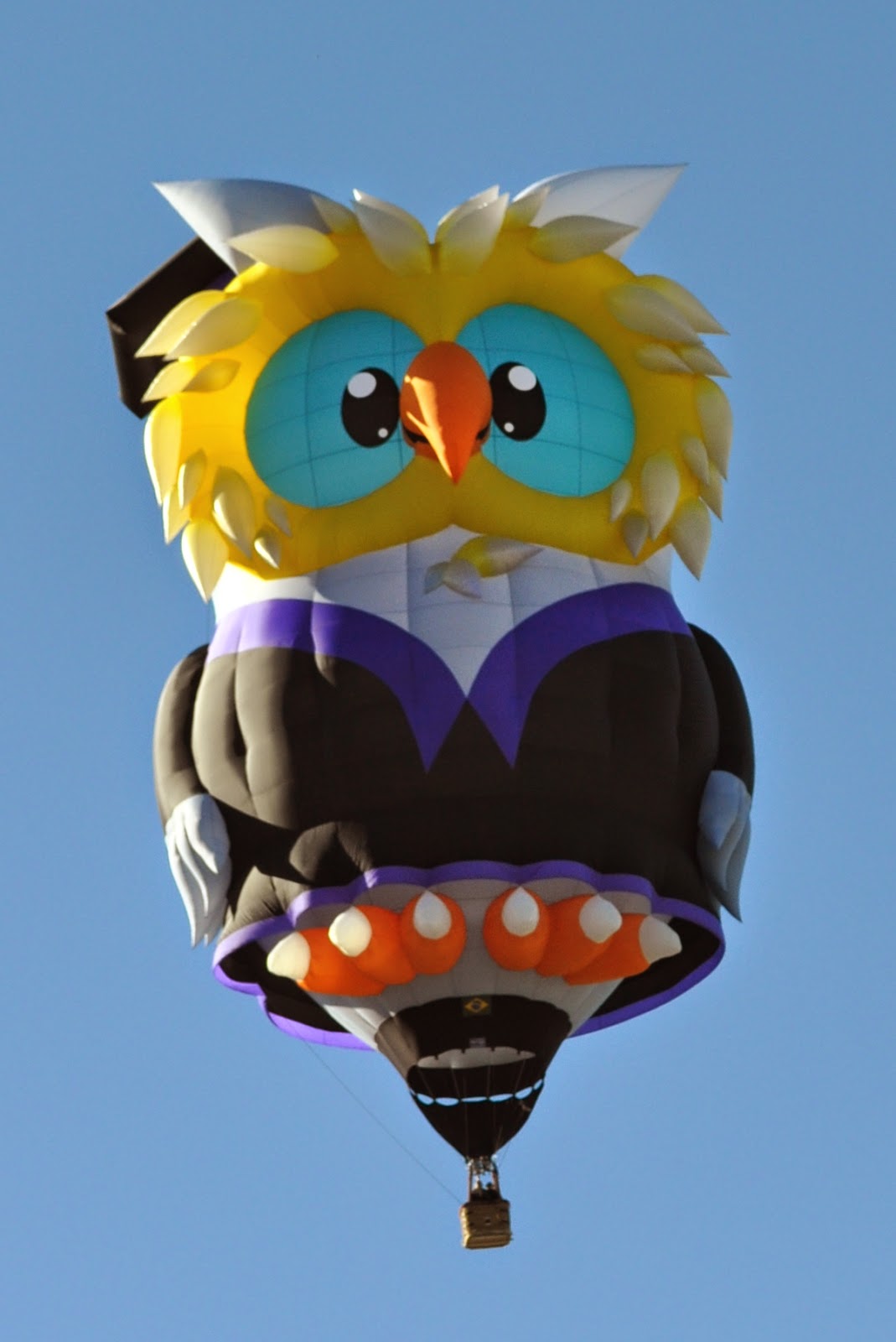 Our first morning of the Albuquerque 43rd Annual Balloon Fiesta began by us leaving our rig along with our neighbors full of excitement at 5:30 am. We walked in the dark with the chill of the morning air, excited to experience our first morning of balloons. We were greeted at the field with the glow of many balloons lighting up the dark, and as we stood on the field, we watched as more balloons were pulled out, laid out and teams began to inflate them. Many balloons were nestled within very close quarters. While the Dawn Patrol (the more experienced balloon pilots) tested the morning air first, the dawn patrol was followed with the National Anthem, while the Yellow Fiesta Balloon with American flag hovered above. Following the National anthem cheers were heard as each balloon got their individual clearance and began to leave land and join the many balloons during the morning's mass ascension of balloons. More than 550 balloons are part of this year's Fiesta, with over 100 balloons of special shapes included and pilots from the United States and 21 foreign countries. The special shape balloon Darth Vader, a 7 year participant was joined this year by a new surprise which was not revealed until the opening morning- Yoda. Both Darth Vader and Yoda were built in England and are owned by Benoit Lambert from Belgium.