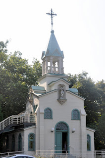Our tour included all three churches that were built over the years, all but the first oratory are still used multiple times a day. The grounds also have a museum that includes the actual brother Andre office and the actual hospital room he died in. And, his heart, yes you read right, is also on display. We heard the story too of how his heart was stolen in 1973 from the shrine were it was on display. It was held for ransom. The church never paid the ransom and the thieves realizing they were not going to get a ransom, eventually let church officials know where they could find brother Andre's heart. His heart was then put back on display, under greater security and alarms, however.
